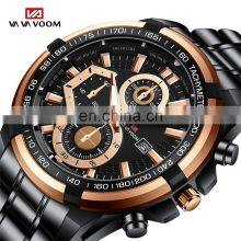 VA VA VOOM 2321 Men Quartz Watch Sports Fashion Rose Gold Case Black Stainless Steel Chain Watch for Men