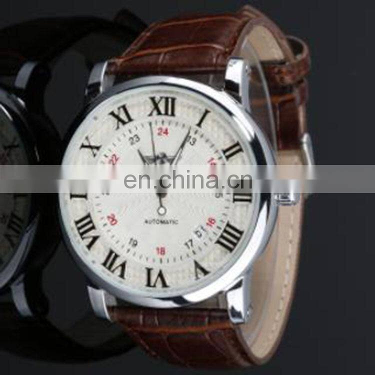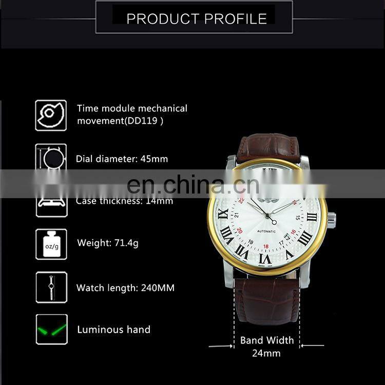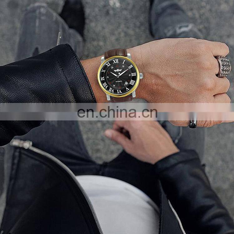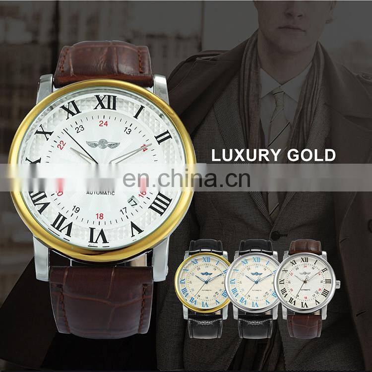 Famous Style Hot Product WINNER 142 Men's Automatic Mechanical Leather Strap Analog Display Stand Sport Watch