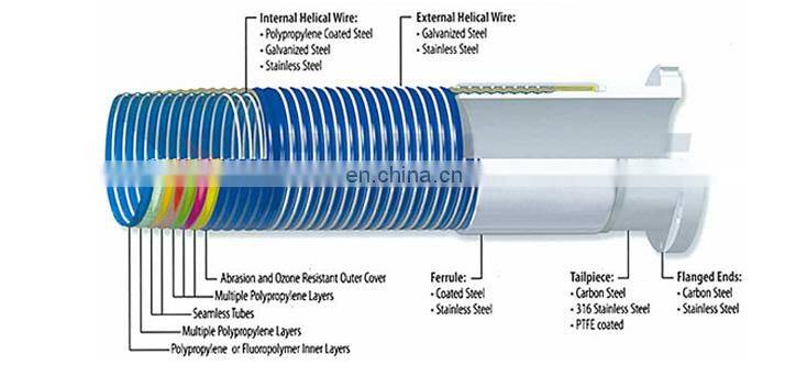 China Manufacturers 304 Stainless Steel Polypropylene/polyester Composite Chemical Hose Pipe for Petroleum