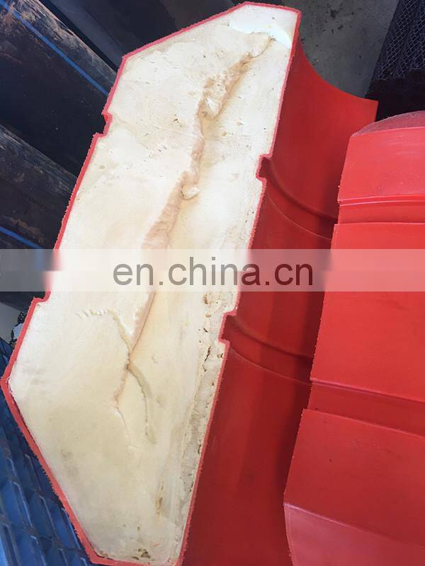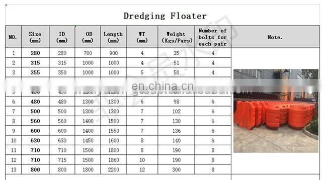 material,inside of shell is filled with high strength polyurethance foam. Widely used as floater in offshore dredging working and oil area.substitution of the traditional steel floater for the floating dredging pipe.Low maintenance cost, flexibility in assembly.