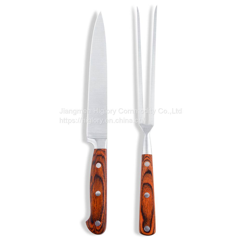 Hot sale 2 pcs BBQ kitchen stainless steel carving meat knife and fork set