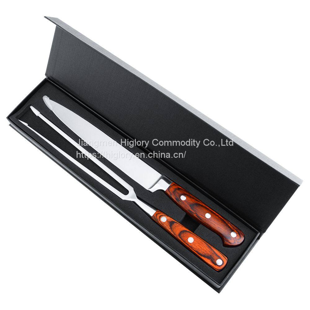 Hot Sale 2pcs BBQ Kitchen Stainless Steel Carving Meat Knife and Fork Set