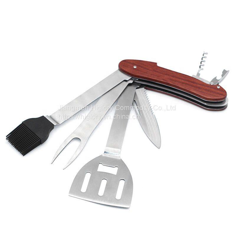Multifunction BBQ Tools -Knife,Spatula,Silicone Basting Brush,Fork,Jar Opener and Wine Cork Screw