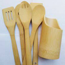 Bamboo Cooking Spatula Spoon Set With Holder/kitchen Bamboo Utensils Holder From China