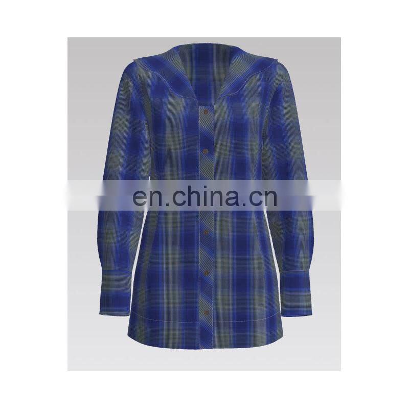 Fashion Blue Checked Yarn-dyed Poplin 100% Cotton for Suit