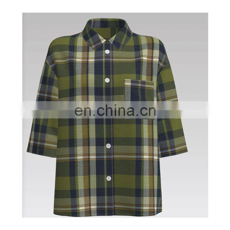 Direct Sales Cheap Summer Breathable Women Dress Shirt Seersucker Fabric