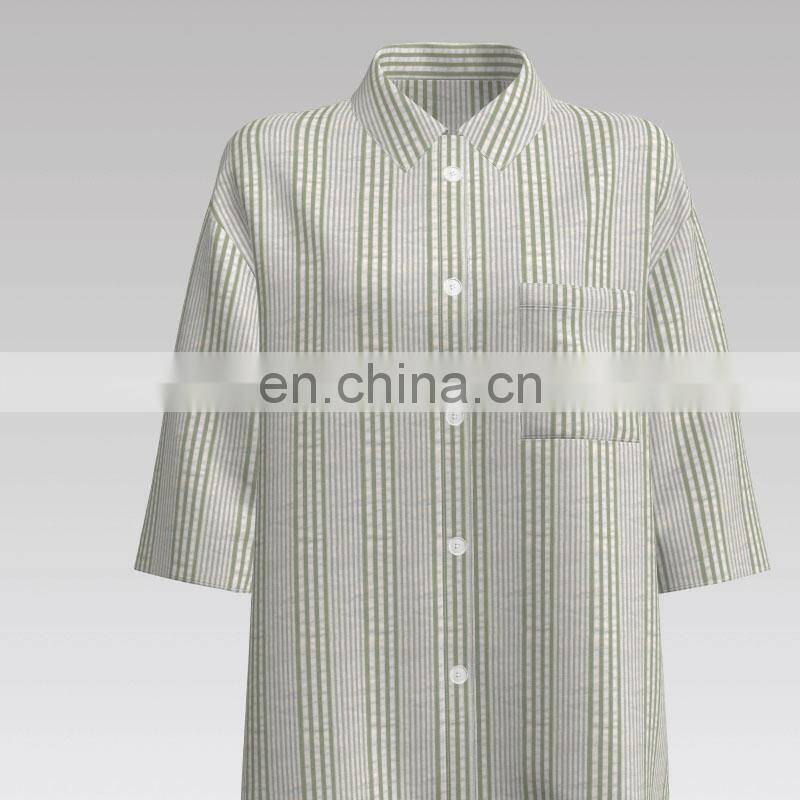 Direct Sales Cheap Summer Breathable Women Dress Shirt Seersucker Fabric