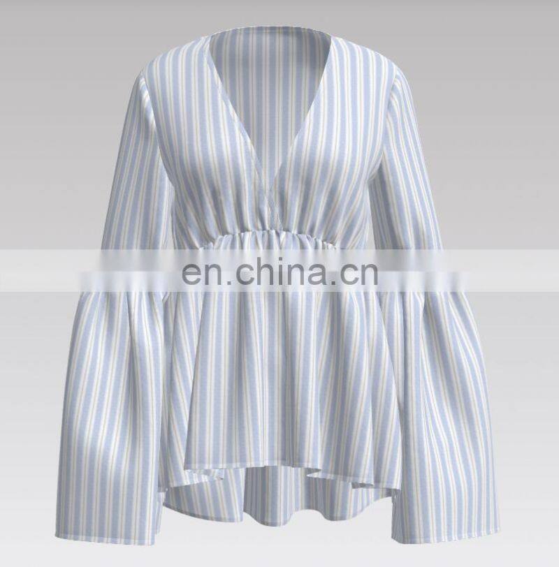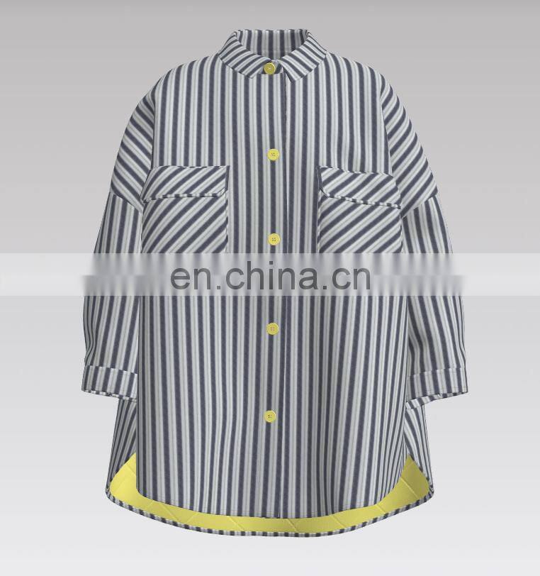 Fashion Trend Stretch BCI Cotton Yarn Dyed Wrinkle Stripe Fabric for Blouses