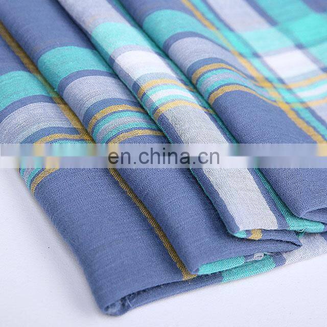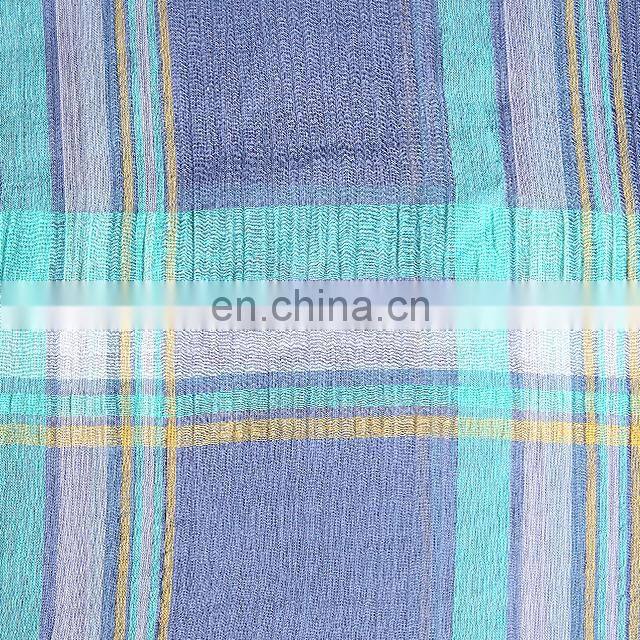 Stock Twisted Yarn Dyed Fabric Linen Cotton Blend Plaid Crepe Fabric