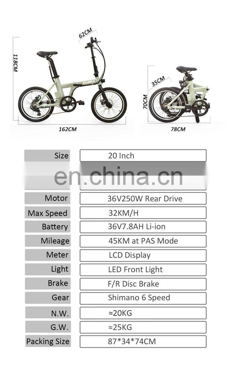 OEM 20inch 36v 250W 32KM/H Speed Electric City Bike Folding E-Bike