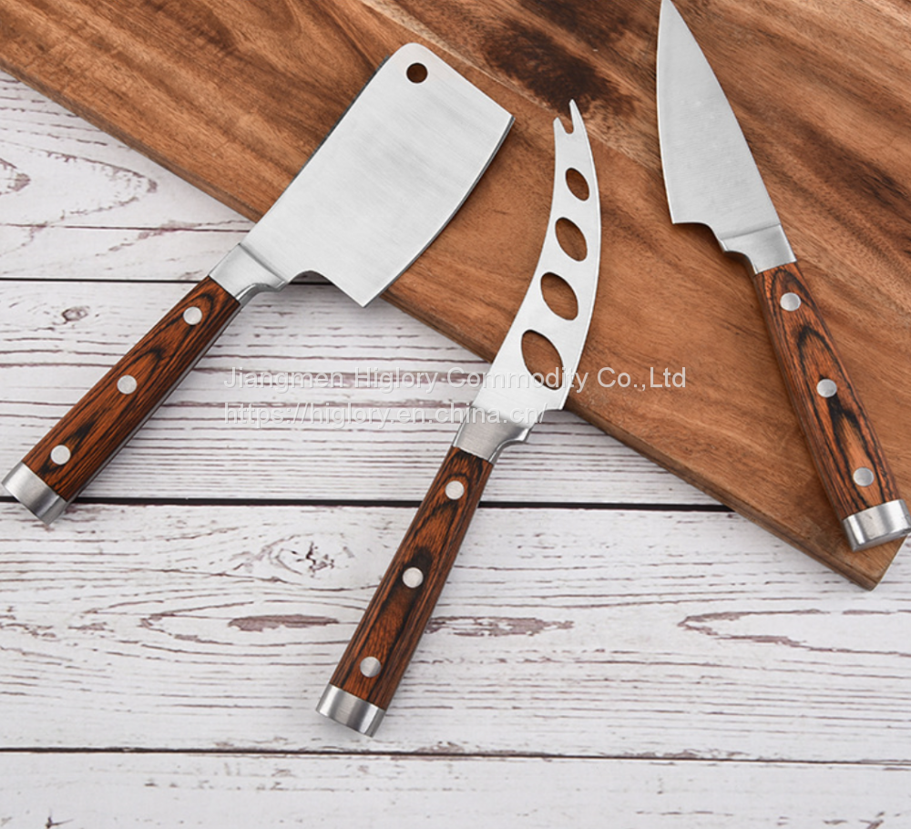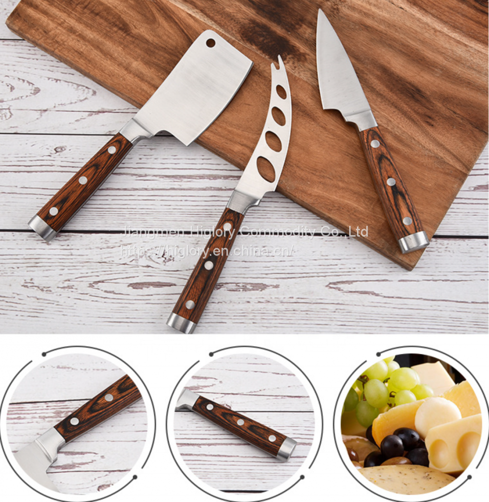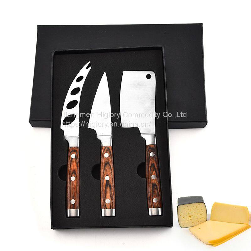 3 Pieces Luxury Pakka Wood Handle Cheese Knife Set With Paper Gift Box