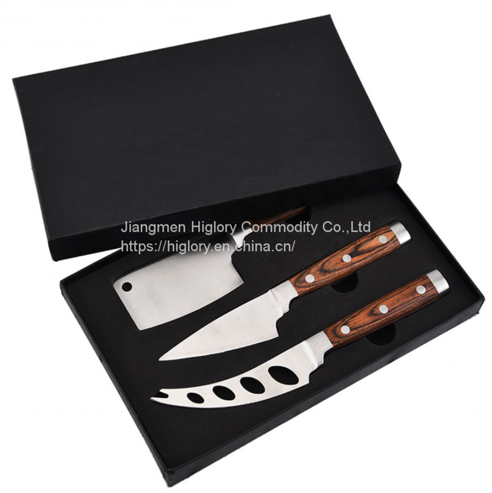 3 Pieces Luxury Pakka wood handle Cheese Knife Set With Paper Gift Box