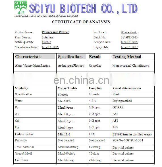 Home > Products > other plant extract > High Quality Blue Spirulina Extract Phycocyanin
