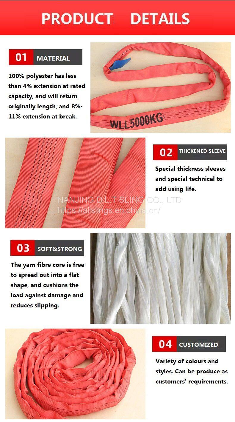 Endless round sling are an endless loop of yarns, covered by a woven tubular jacket. All of the load-bearing polyester yarns in the round slings have a protective polyester sleeve, ensuring product durability and safety when lifting heavy loads.