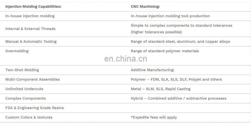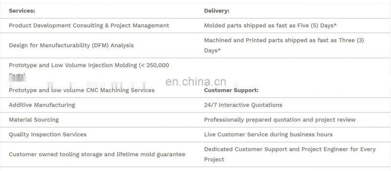 Cojoy delivers a wide variety of injection molded, CNC machined, and 3D Printed parts in under fifteen (15) business days.