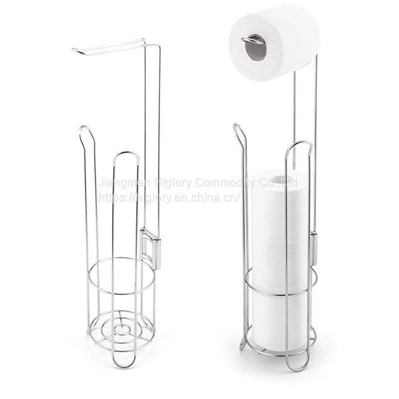Standing Toilet Paper Holder Stand With Storage for 3 Rolls of Toilet Tissue for Bathroom
