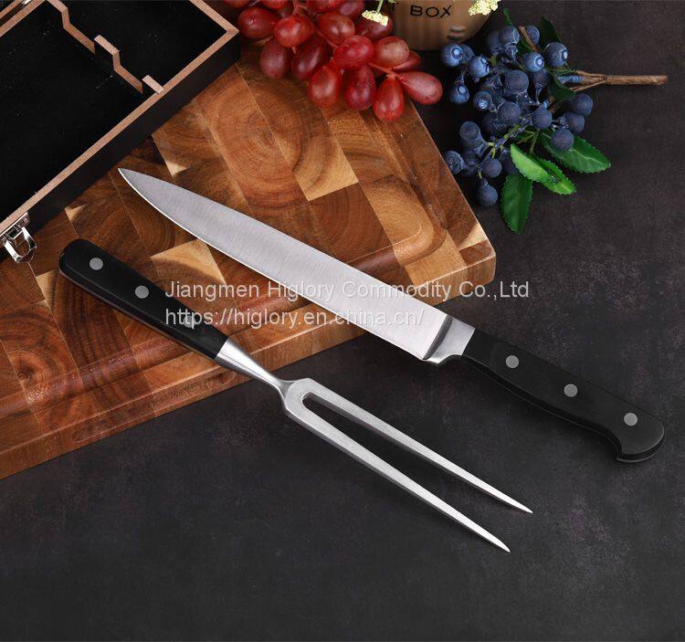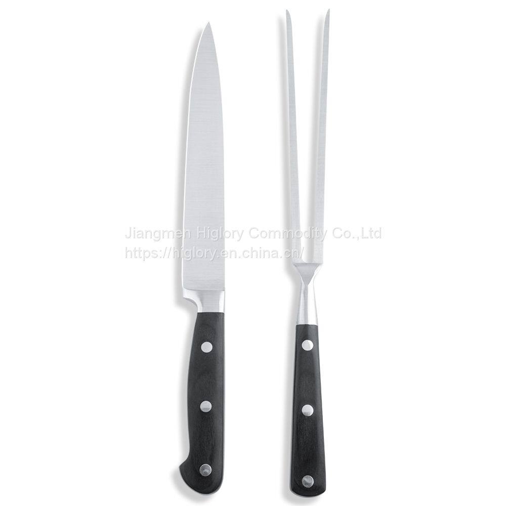 Hot sale 2 pcs BBQ kitchen stainless steel carving meat knife and fork set