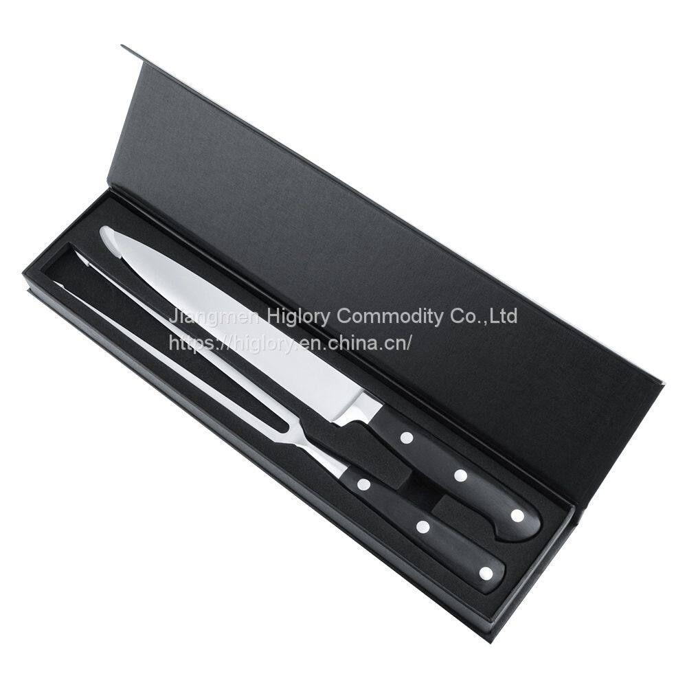 Hot Sale 2pcs BBQ Kitchen Stainless Steel Carving Meat Knife and Fork Set