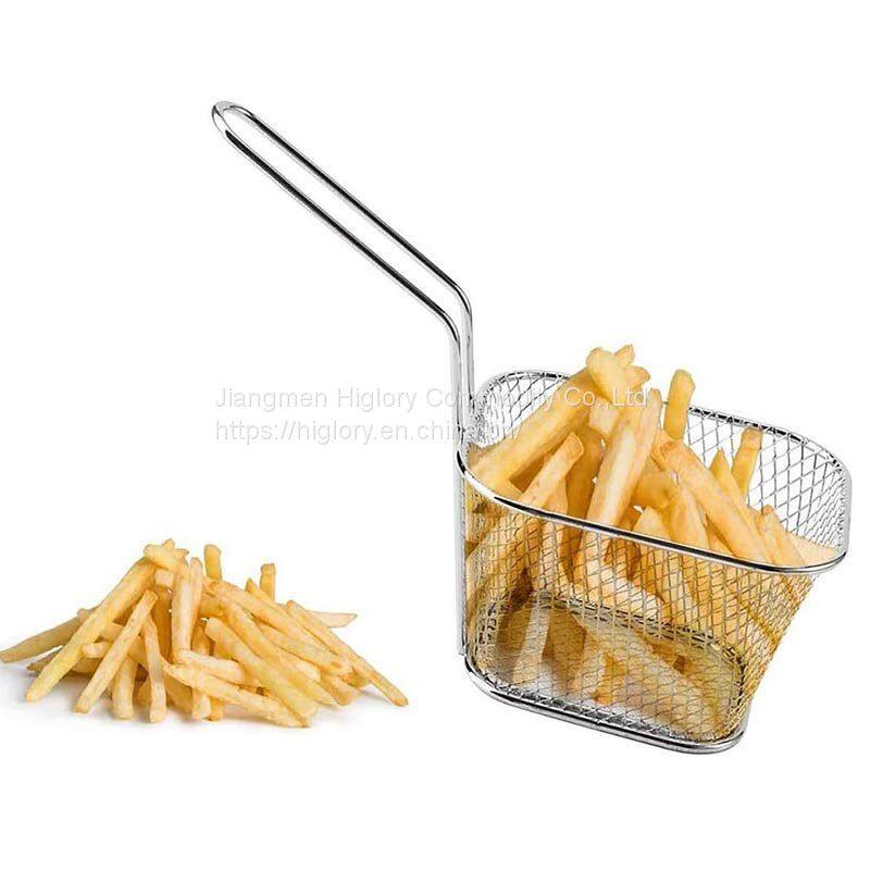 Fried Food Table Serving Chrome Rectangular Chips Fry Basket French Fries Basket Square Mini Frying Basket