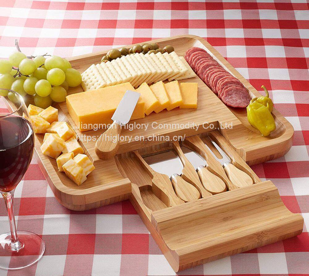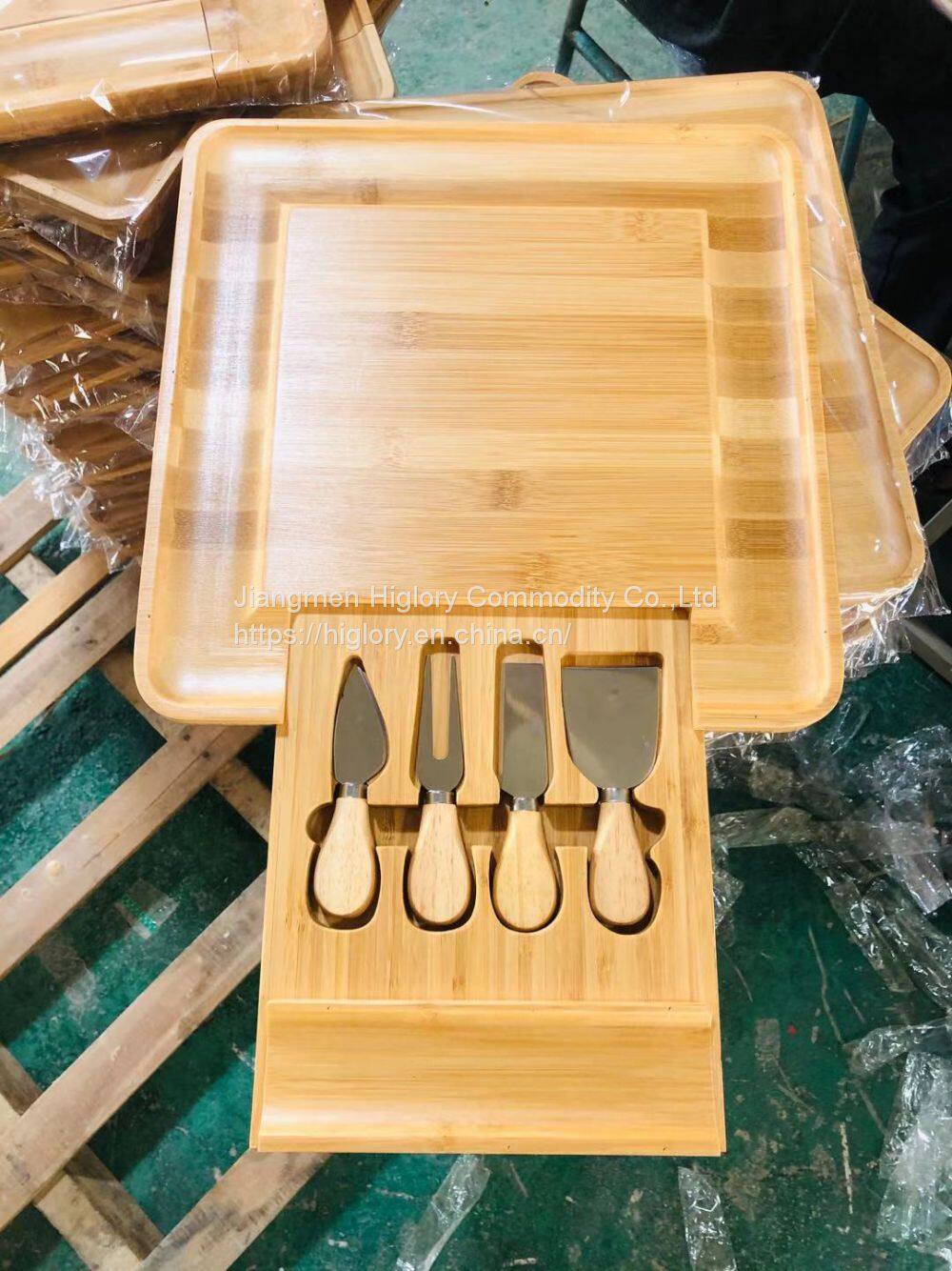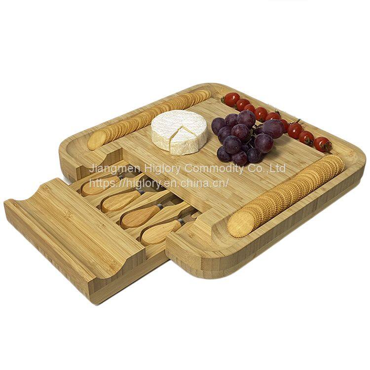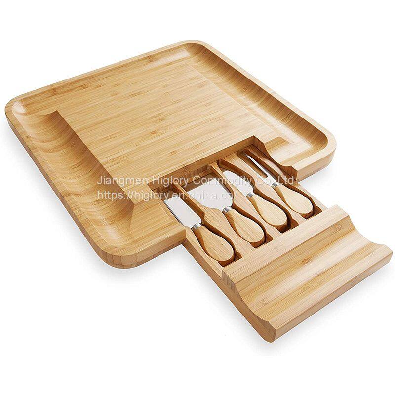 Wholesale Bamboo Wood Cheese Boards and Knife Set Bamboo Serving Platter Cheese Cutting Board Set
