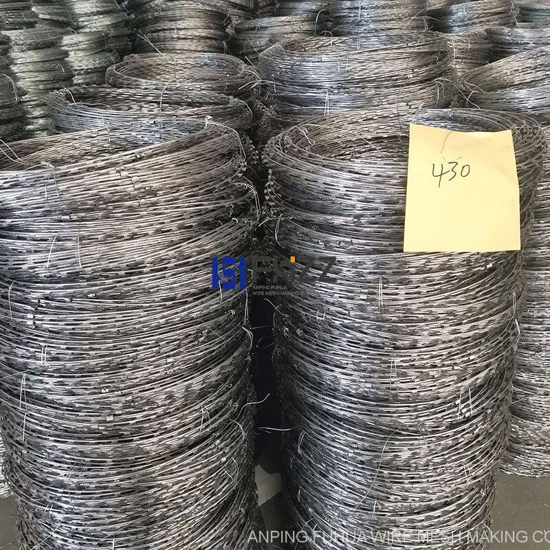 Full Stainless Steel 304 Diameter 450mm Concertina Medium Barbed Tape BTO-22 Razor Wire