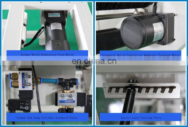 Automatic feeding, length can also be adjusted automatically through the combination of electric eye and timer. Equipped with induction motor to automatically take up waste..