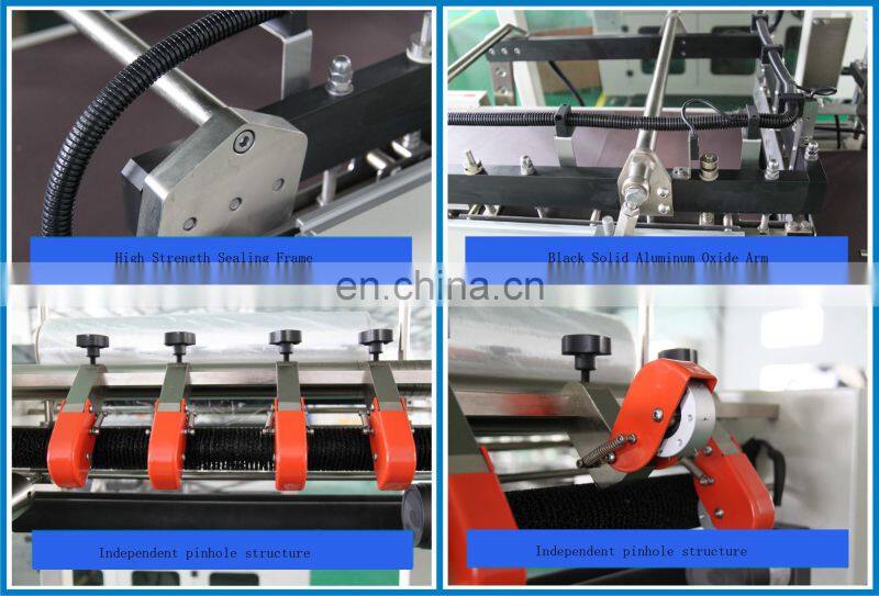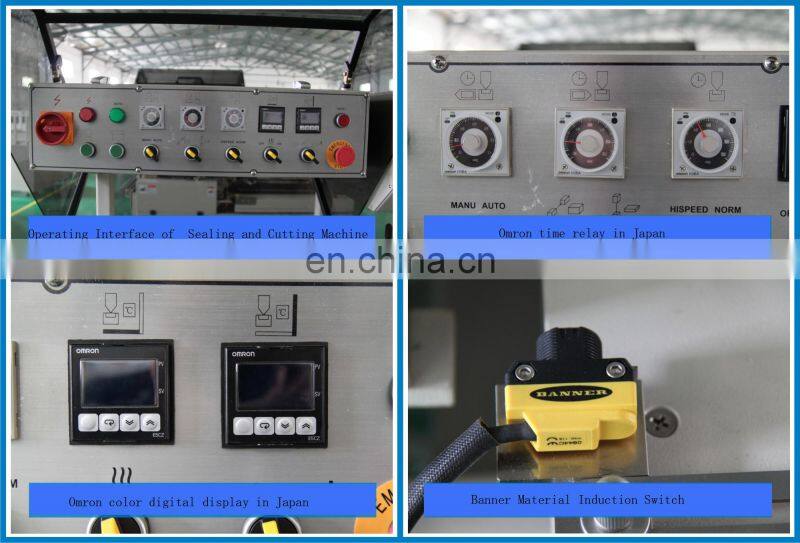 The sealing and cutting part of the machine is equipped with an organic glass protective cover and has an automatic alarm function, thus greatly improving the safety of operators.