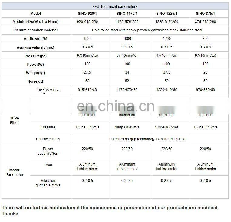 continuously run. And the air flow can reach to 0.45mm/s±20%. Long-life service, low noise, maintenance-free, small vibration, and adjustable speed. It can control thousands of units together. Before packing, it must pass the test according to the international standard. The product is widely used in industries of semi-conductor, electronics, flat-panel screen, disc drive, optics and bio-engineering,etc. Customized design is available.