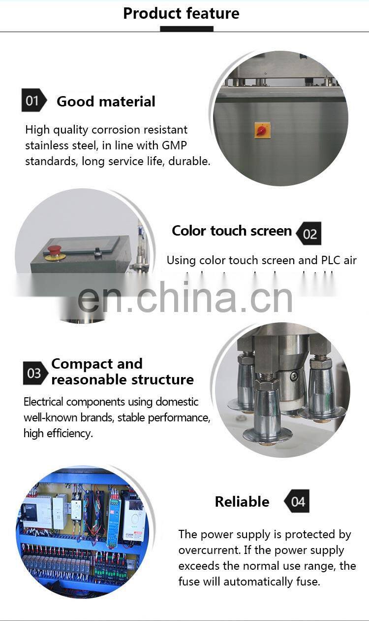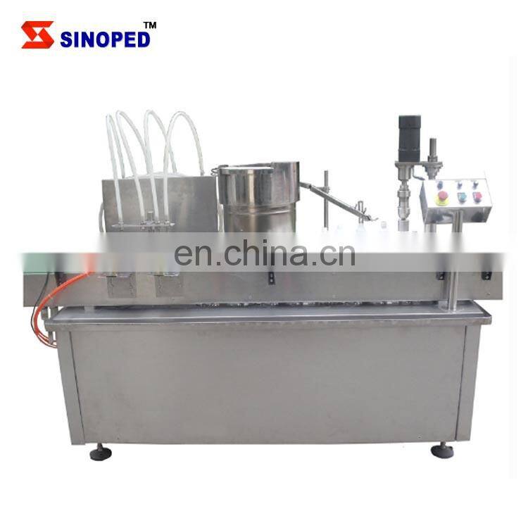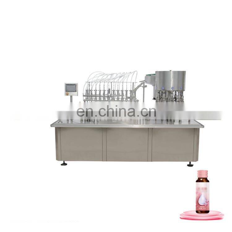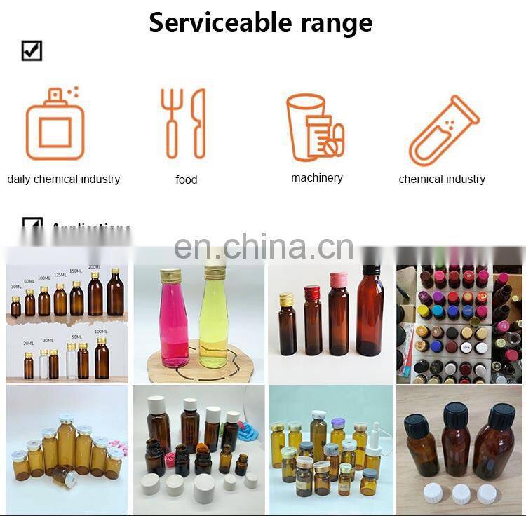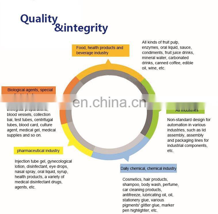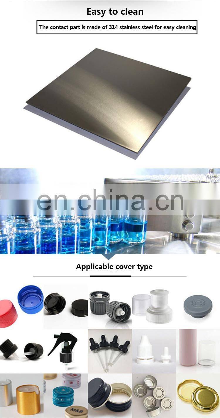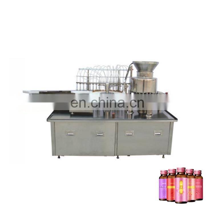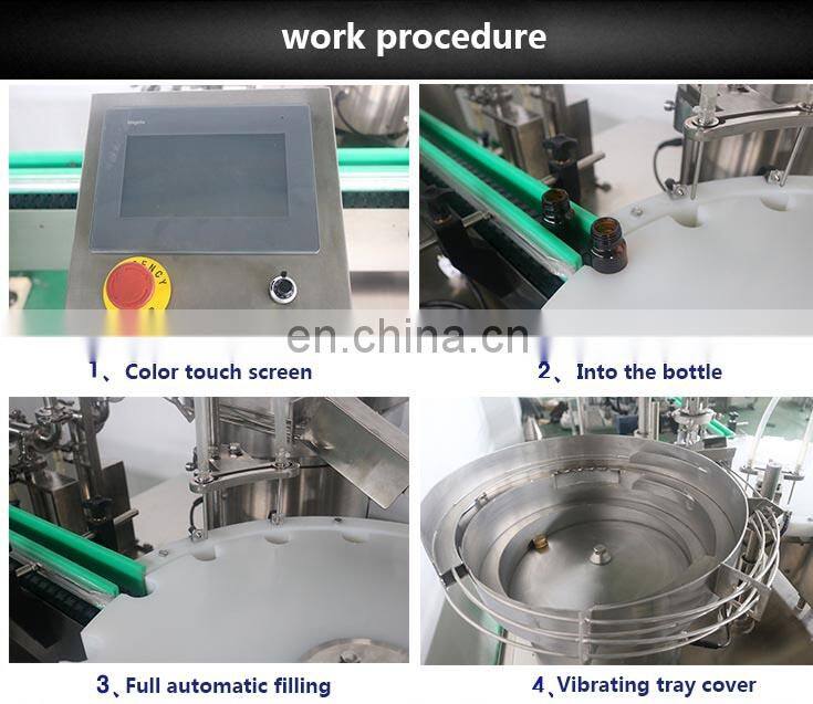 bottle. Tracking filling, cap automatically conveying by electromagnetic oscillator, three knifes centrifugal sealing (or