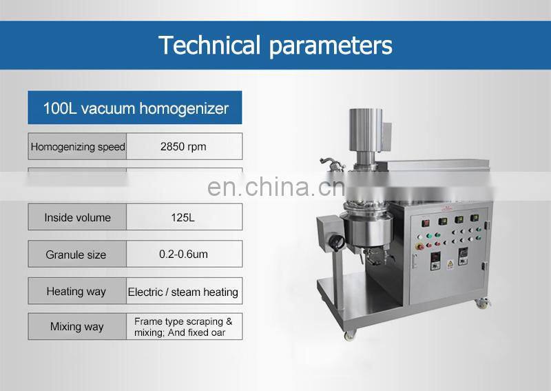 | 100L Vacuum homogenizer emulsifying machine with a water tank and a oil tank. | |