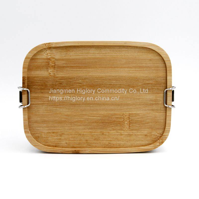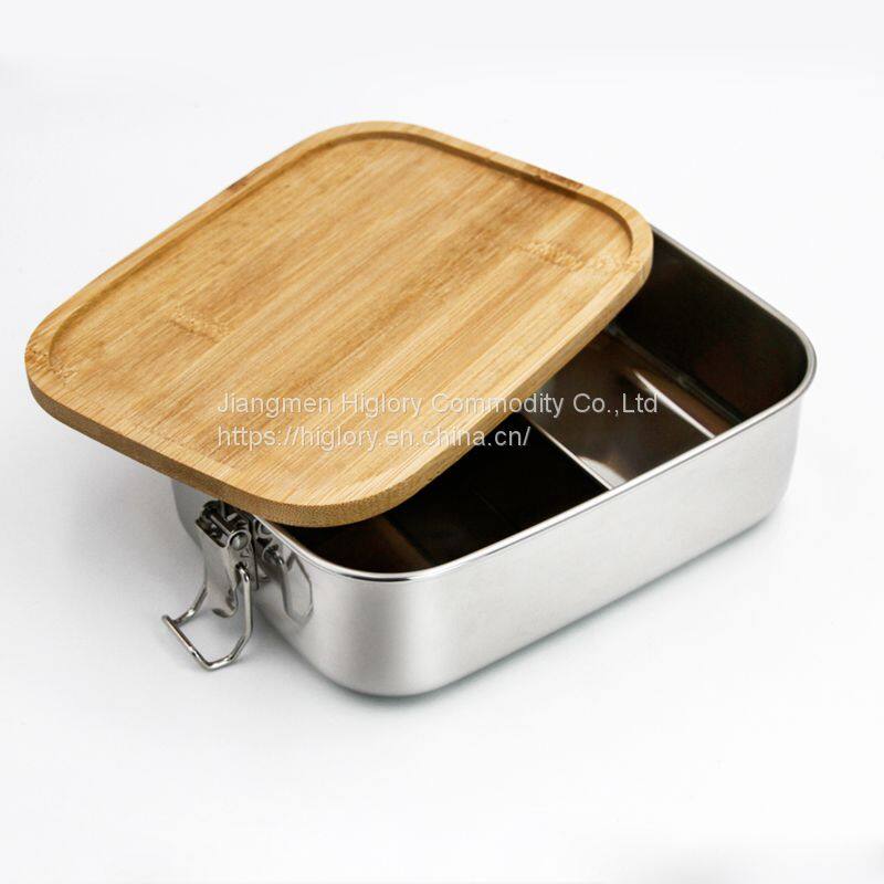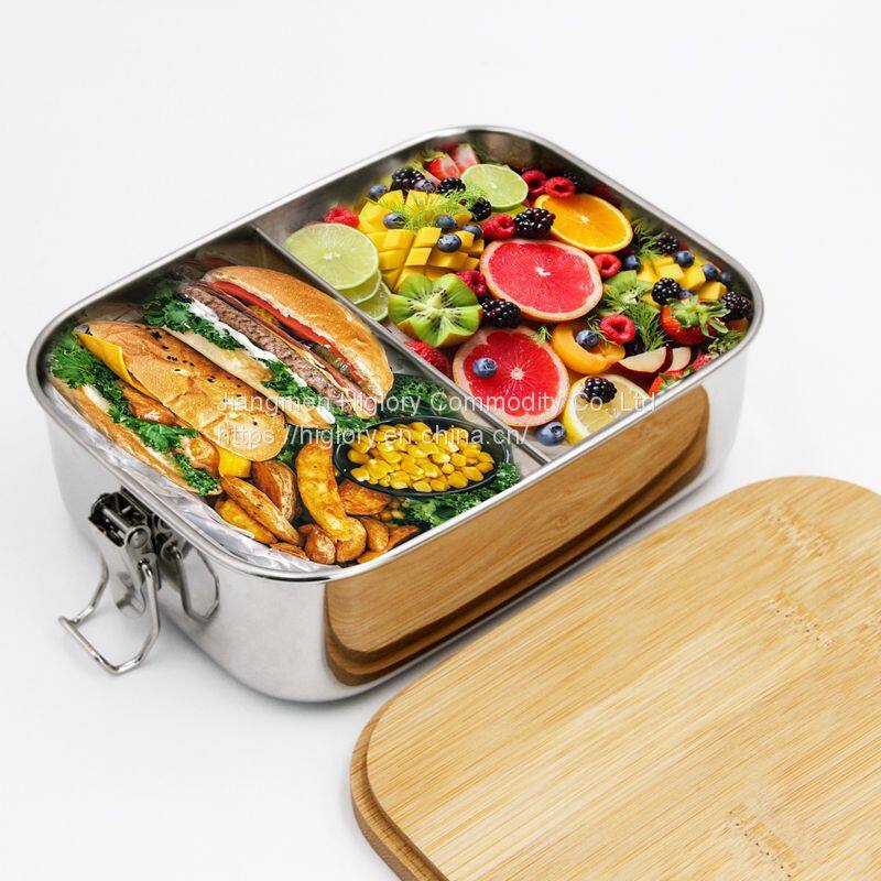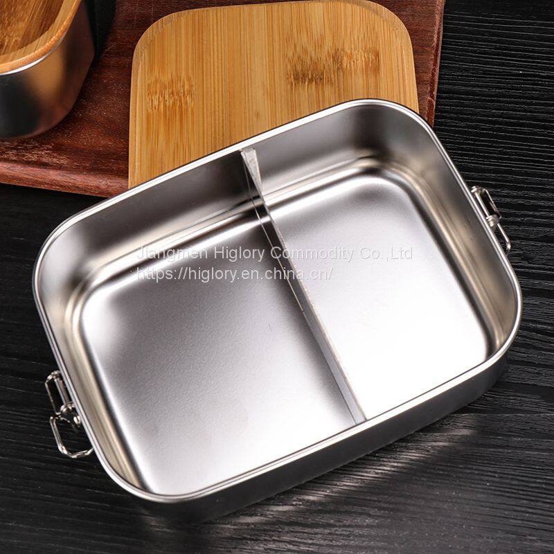 Japan Style Stainless Steel Lunch Box/two Compartments Metal Food Storage Container With Bamboo Lid