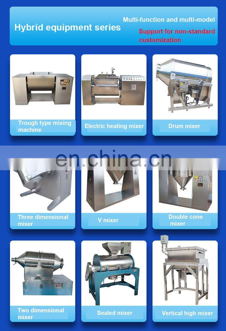Used for mixing powder or wet materials to make main and auxiliary materials of different proportions mix evenly.The machine is made of stainless steel where it contacts with materials. The gap between pulp leaves and barrel body is small and there is no dead Angle in mixing. Sealing device is set at both ends of stirring shaft to prevent material from exuding.Widely used in pharmaceutical, chemical, food and other industries.