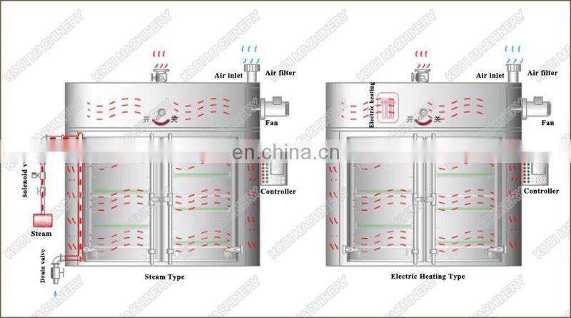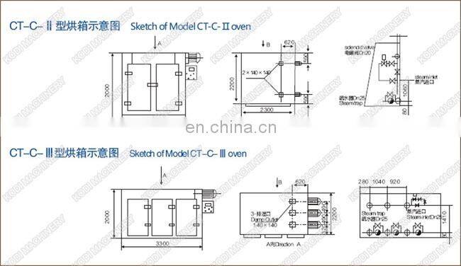 CT-C Hot Air Circulating Drying Oven or Tray oven dryer adopts noise elimination and thermal stable axial flow fan and automatic temperature control system. The entire circulation system is enclosed to make that the heat efficiency of the tray dryer increases from 3~7% of the traditional tray dryer to 35~45% of the present one. The highest heat efficiency can be up to 50%.The successful design of CT -C hot air circulation oven makes that the hot air circulation tray dryer in our country reach the advanced level in the world.
