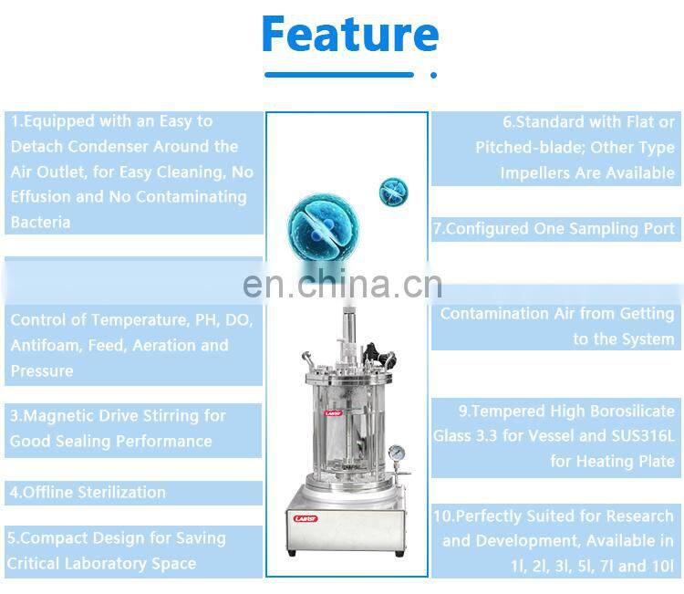 Benchtop Bench Top Small Glass Lab 5l 10l Microbiology Photo Plant Cell Bacterial Fermentation Fermentor Fermenter Bioreactor