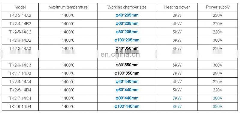 Temperature control safety | The furnace adopts integrated circuit, module control, double circuit protection (partial temperature protection, ultra-high temperature protection, broken couple protection, over current protection, overpressure protection and other protection functions) to make the furnace work stable, reliable and safe. | ||||||
