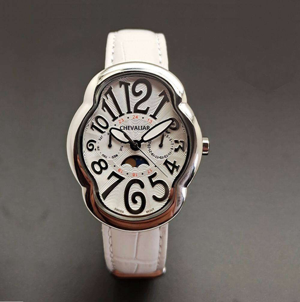 Stainless Steel Quartz Women Watch Genuine Leather Strip Multi-function Fashion Lady Watch