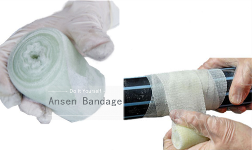 Ansen pipe repair bandage is a fast curing tape composed of flexible fiberglass mesh impregnated with water activated polyurethane resin. Our repair bandage is mainly used to repair, reinforce and protect oil, gas, water etc pipeline. It adheres to metal, plaster, pvc, copper, rubber, concrete, wood, ceramic etc. It can be applied on cracked, fractured, corroded, damaged and leaking pipes, around difficult shapes including straight lengths, tee and elbow joints.