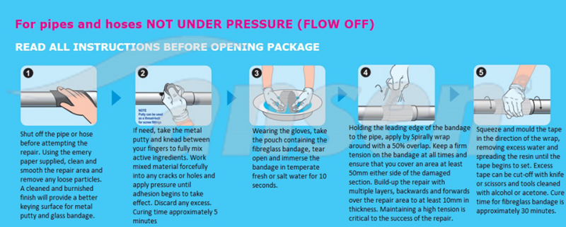 4.The bandage should be wraped at least 10 layers on the damaged part/area of the pipe.