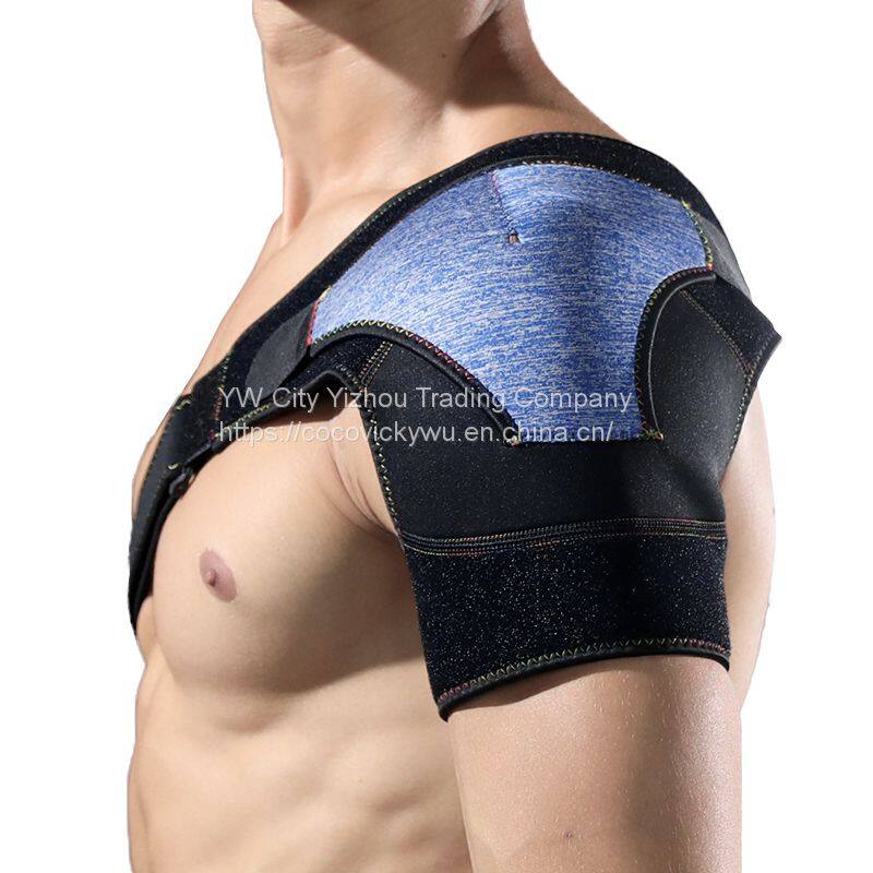 The shoulder support is used to prevent or alleviate the pain due to muscle cramps and injury. The elastic material can provide help for maintaining body temperature, vaccelerating blood circulation, and facilitating rehabilitation.