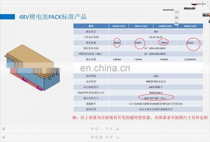 LiFePo4 and NMC(Li(NiCoMn)O2) are the major material. We have more 30 types of cells, and could make OEM battery pack from 12v-200v, 10-200ah, which can be used in electric vehicle, E-bike, UPS, energy storage system, telecommunication base station, E-scooter, E-tools,unmanned airplane, golf cart, fork lift, cleaning car , electric wheelchair, etc.s.