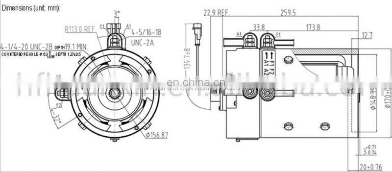 12 V1.6KW Volt Hydraulic Cylinders Pump Motor Double Acting Unit With 7L Tank