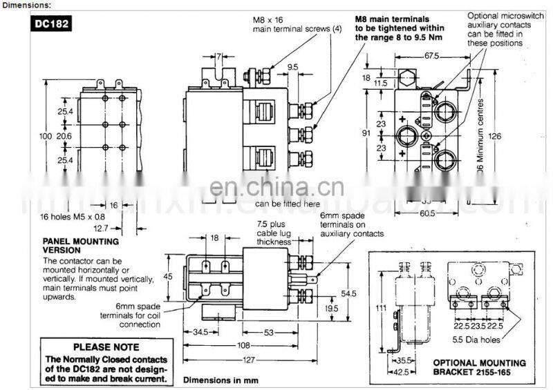 Albright Contactor Single Pole Double Throw DC Contactor DC182B-7