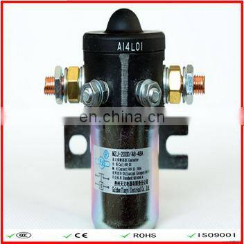 The MZJ-200D (typical model: MZJ-200D/48.48A) are single coil SPST (Single Pole Single Throw), NO (Normal Open) DC contactors, widely applied in electric vehicles (golf cart, pallet truck, folklift, etc.) or uninterrupted power supply system.