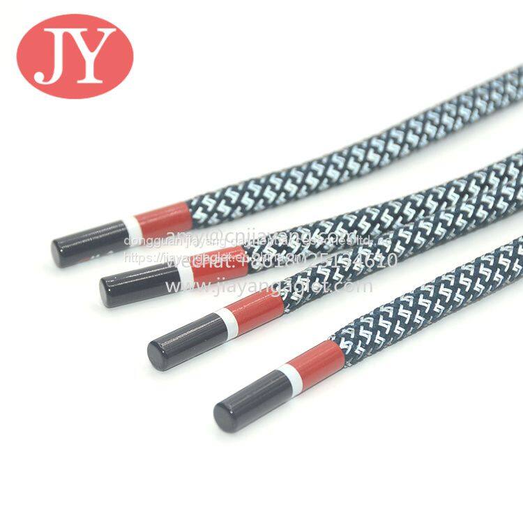 Oval Shoelace Metal Aglet Print Logo Polyester String With Brass Aglet Shoe Cord Metal Ends