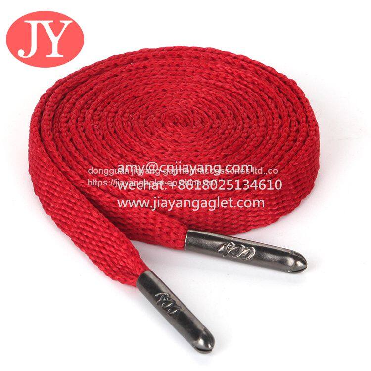Custom Flat Polyester Rope With Metal Aglet Tips Shoealce Brass Aglet Cord Ends for Sweat Pants