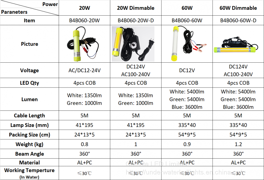 - Comlite 60W 12V LED Underwater Fishing Light Submersible Fishing Light Commercial Fishing