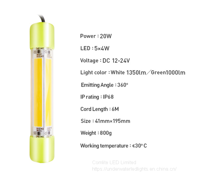 Comlite 20W 12V LED Underwater Fishing Light Submersible Fishing Light Recreational fishing