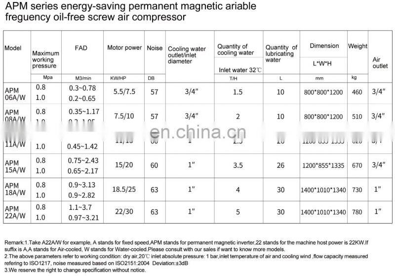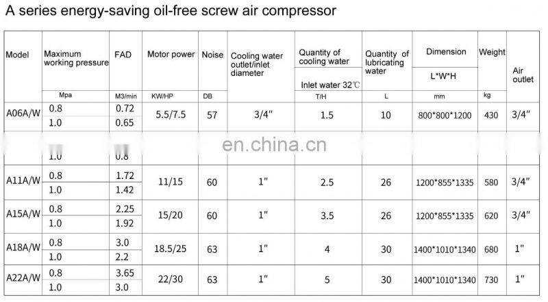2021 New 8 Bar To 13 Bar Oil Free Water Lubrication Air Compressor Price Industrial Oilless Screw Type Air Compressor