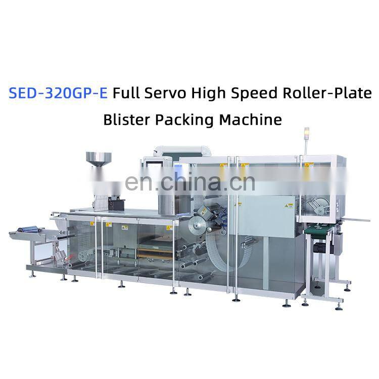 SED-320GP-E high speed roller-plate blister packing machine adopts leading quality, good capability, all-round function, good reliability and high productivity. It adopts auto-controlling technology and uses new material, new craft, and new technology to make the structure more reasonable.