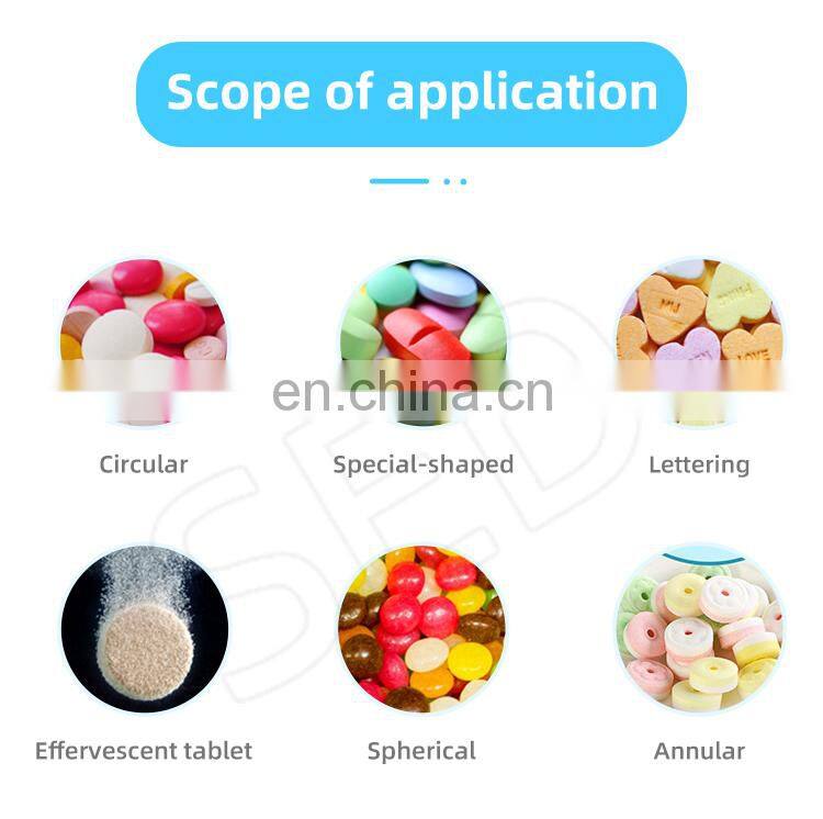 That machine is a single press automatic rotation for shape-pressing equipment, which have the function of press the grains material to be round or irregular shape tablets, such as candy, calcium tablets double-sides with letter printing and etc. which widely suitable for the Industries of pharmaceutical, Chemical, Foodstuff, Plastic Electronic, Powder Metallurgy and so on.